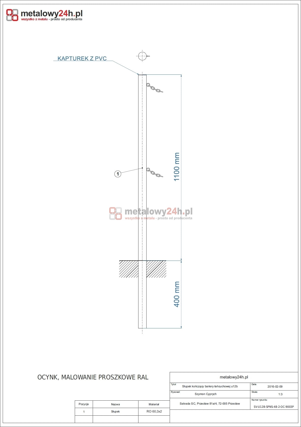 • średnica rury słupka: 60,3 mm,