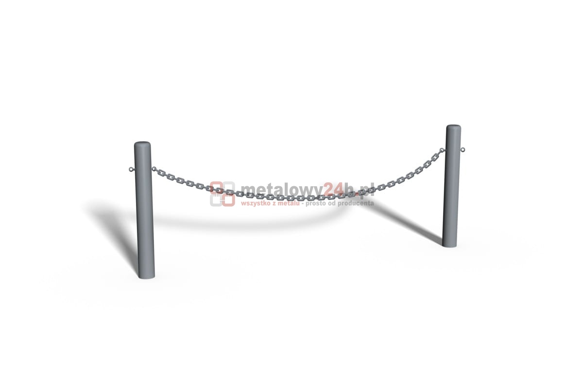 Bariera łańcuchowa / bariera trawnikowa - 200 X 100 cm - słupek Ø 60,3 mm (barierka łańcuchowa, bariera trawnikowa, bariera ochronna) - to prosta w montażu, trwała i praktyczna ocynkowana bariera ochronna o estetycznym wyglądzie stosowana ze względów bezpieczeństwa w miejscach, gdzie wskazane jest odgrodzenie od siebie obszarów o różnym przeznaczeniu np. chodnika dla pieszych i jezdni czy terenów zielonych i parkingów. Bariera łańcuchowa składa się z jednego słupka z ocynkowanej rury stalowej oraz łańcucha (1 rząd). W czasie montażu pierwszy startowy moduł (słupek + łańcuch) łączy się z kolejnym modułem (słupek + łańcuch). Na końcu tak zbudowanego ciągu wygrodzeniowego znajduje się tzw. słupek kończący (zamykający ciąg montażowy).