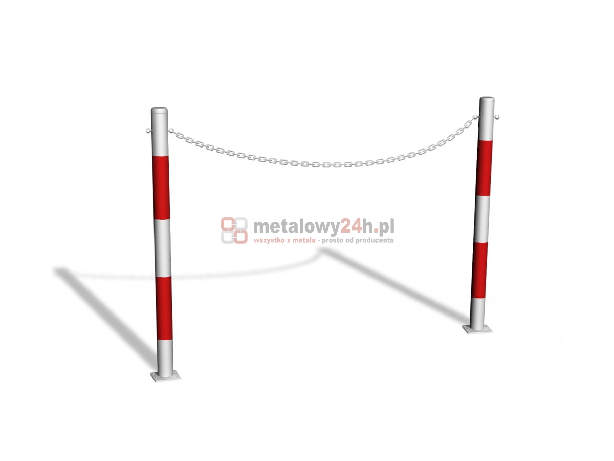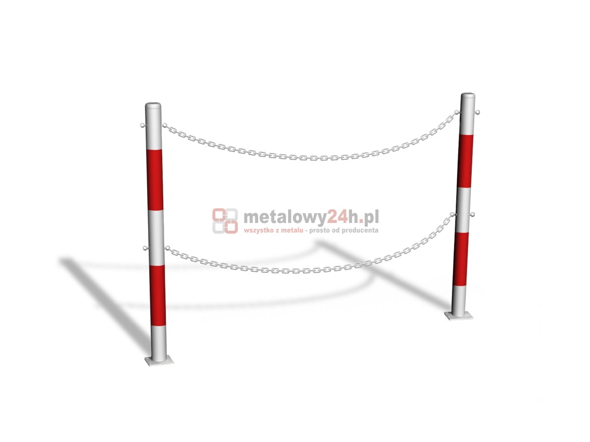 Przykręcana bariera u-12b „łańcuchowa“ - dł. 200 cm, śr. rur 60,3 mm - biało-czerwona