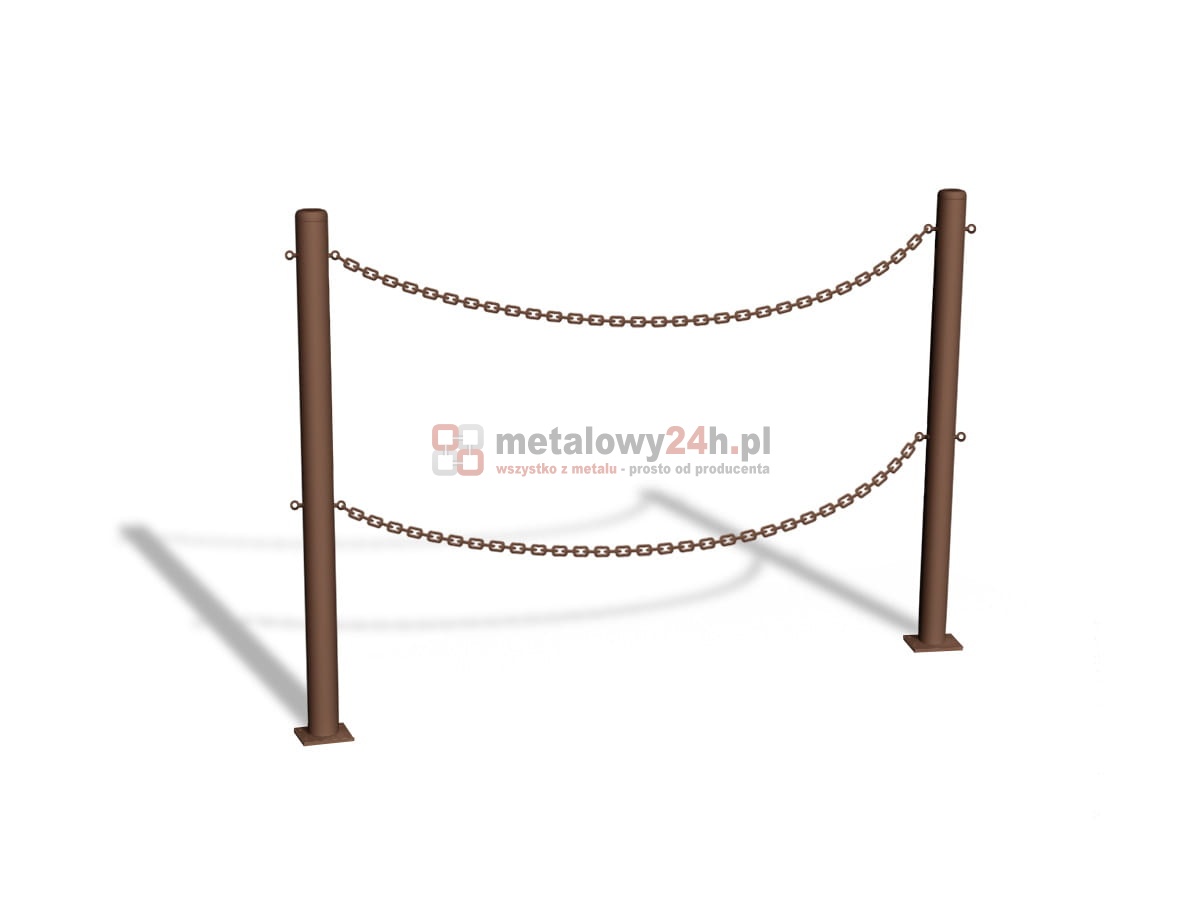 Przykręcana bariera łańcuchowa U12b - 200 x 110 cm - słupek fi 76,1 mm - brązowa