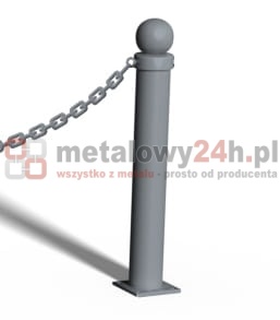 Przykręcany słupek kończący niski Z KULĄ do bariery trawnikowej z łańcuchem - wykonany ze stali ocynkowanej niezbędny element do właściwego montażu barier łańcuchowych. Słupek kończący "zamyka" ciąg montażowy barier. Przykręcana trawnikowa bariera łańcuchowa składa się z jednego słupka z ocynkowanej rury stalowej oraz łańcucha (1 rząd). W czasie montażu pierwszy startowy moduł (słupek + łańcuch) łączy się z kolejnym modułem (słupek + łańcuch). Na końcu tak zbudowanego ciągu wygrodzeniowego znajduje się tzw. słupek kończący (zamykający ciąg montażowy).