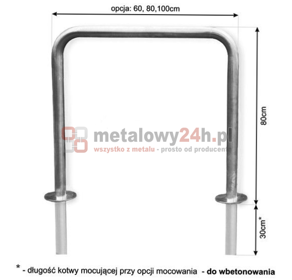 Przykręcany stojak rowerowy stalowy - typ U - 60 x 80 cm - rura ø 48,3 mm - ocynk + RAL