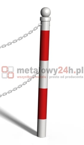 Słupek kończący do bariery u-12b „łańcuchowej“ - model z kulą - śr. Rury 76,1 mm - biało-czerwony - do wbetonowania