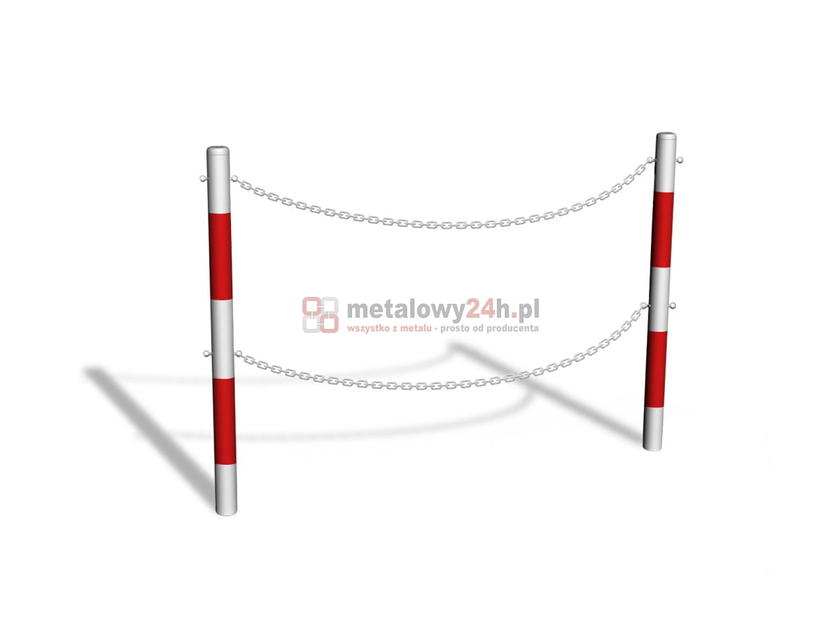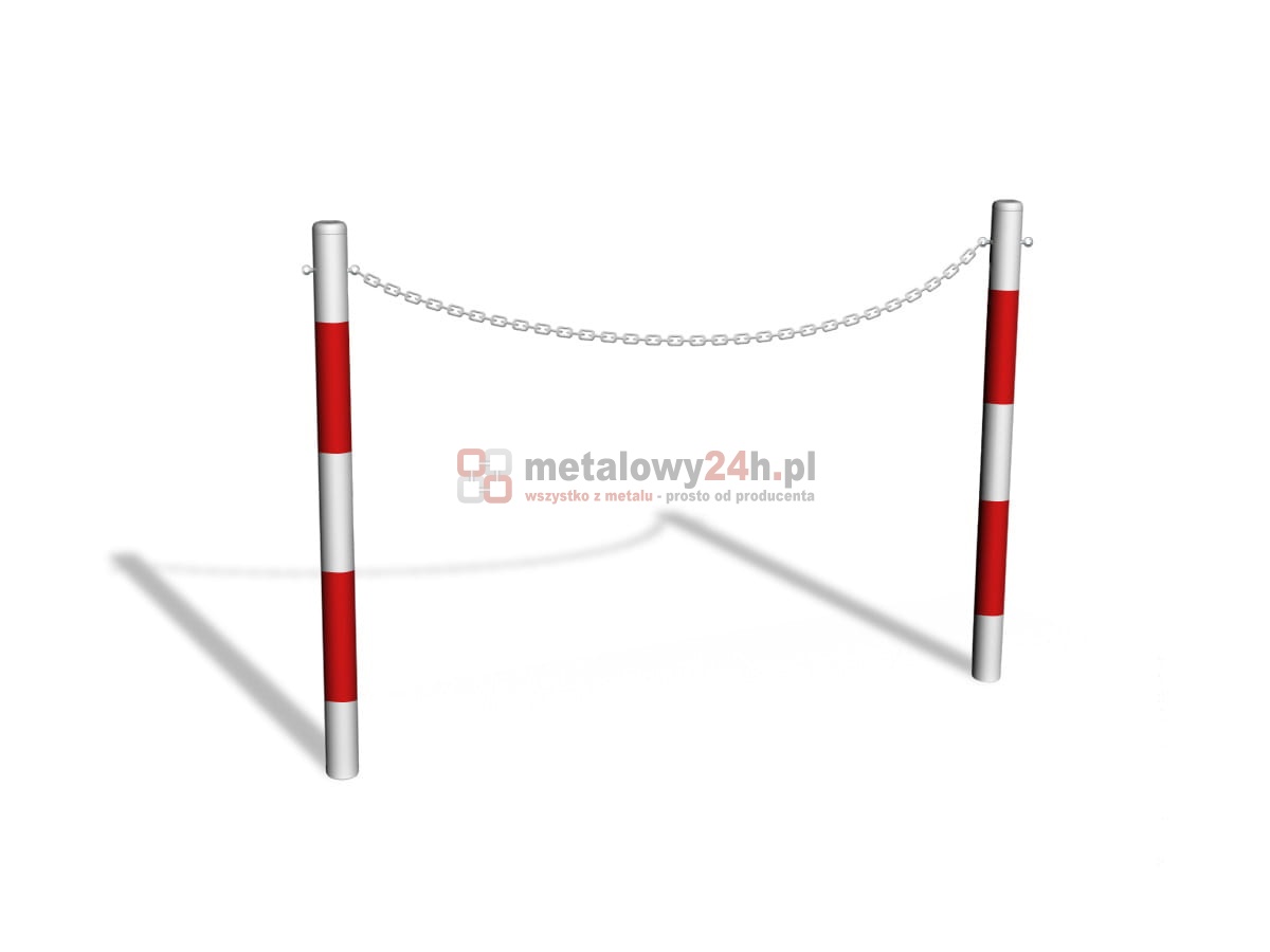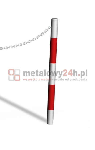 Słupek kończący do bariery u-12b „łańcuchowej“ - śr. Rury 76,1 mm - biało-czerwony - montaż poprzez betonowanie w gruncie