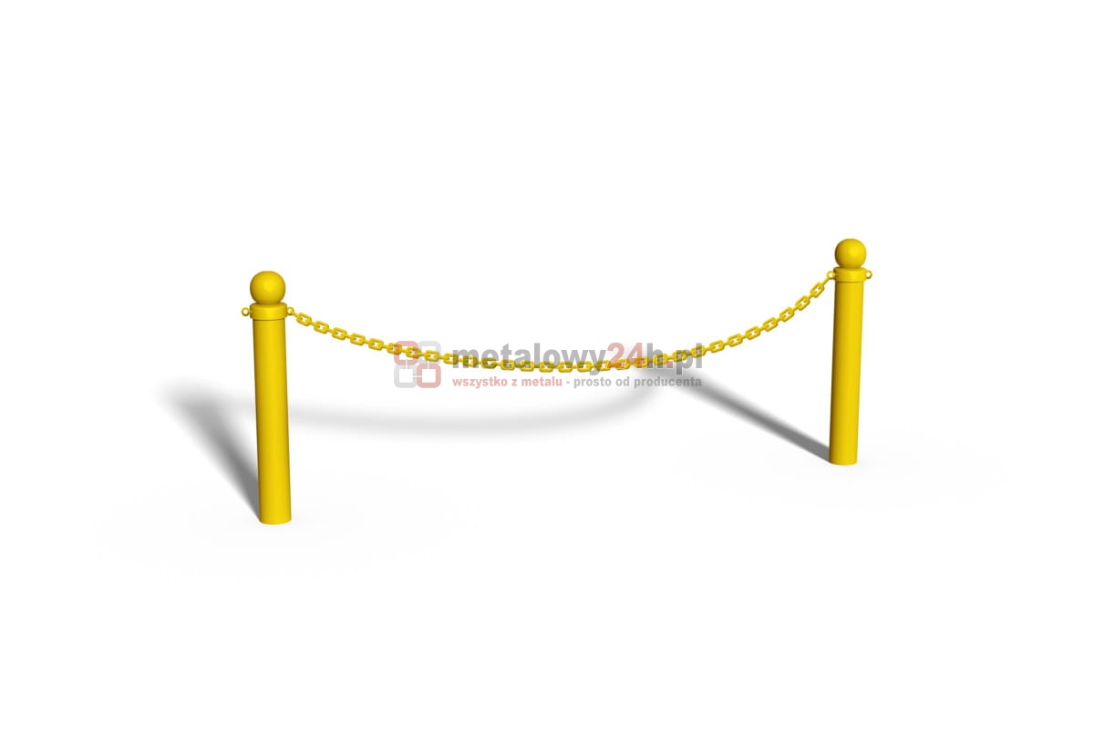 Słupek kończący niski z kulą do bariery trawnikowej z łańcuchem - wykonany ze stali ocynkowanej niezbędny element do właściwego montażu barier łańcuchowych. Słupek kończący "zamyka" ciąg montażowy barier. Trawnikowa bariera łańcuchowa składa się z jednego słupka z ocynkowanej rury stalowej oraz łańcucha (1 rząd). W czasie montażu pierwszy startowy moduł (słupek + łańcuch) łączy się z kolejnym modułem (słupek + łańcuch). Na końcu tak zbudowanego ciągu wygrodzeniowego znajduje się tzw. słupek kończący (zamykający ciąg montażowy).