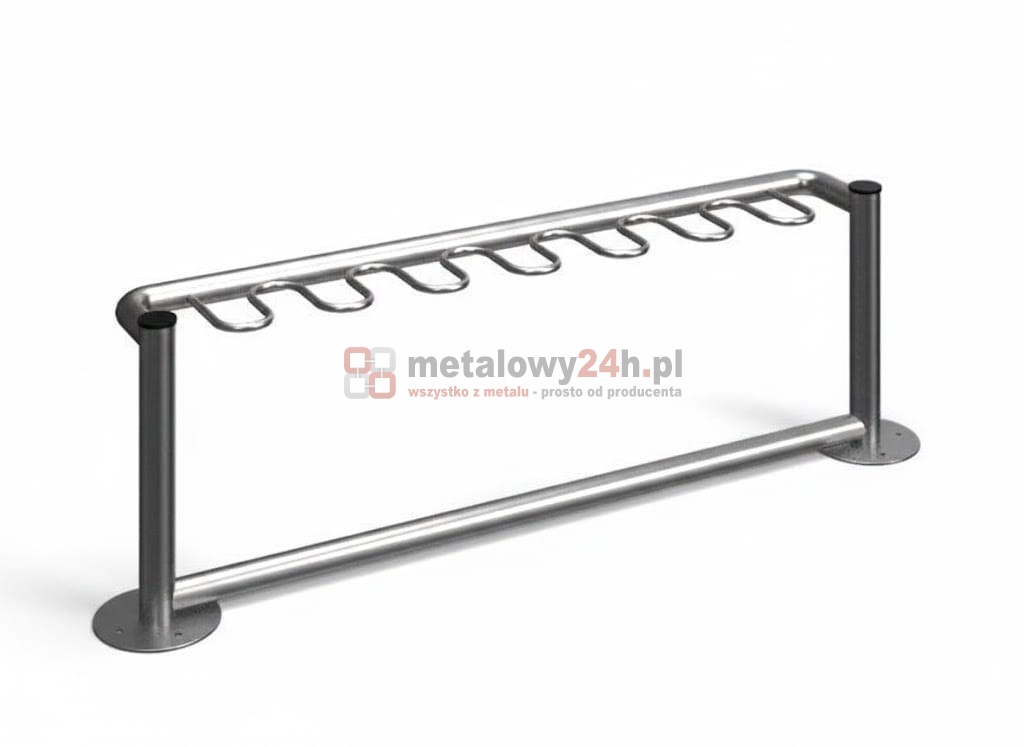 Stojak na hulajnogi Fiołek mieści 6 stanowisk. Stojak jest wykonany z pręta o średnicy 12 mm, a także z rury o średnicy 48,3 mm. Szerokość stojaka wynosi 120 cm, a wysokość 40 cm. Stojak jest dostępny w kliku wersjach: stal ocynkowana, stal ocynkowana i pomalowana, a także stal nierdzewna. Stojak mocuje się przy pomocy 6 kołków rozporowych po 8 mm. Dzięki temu stojak stoi stabilnie.