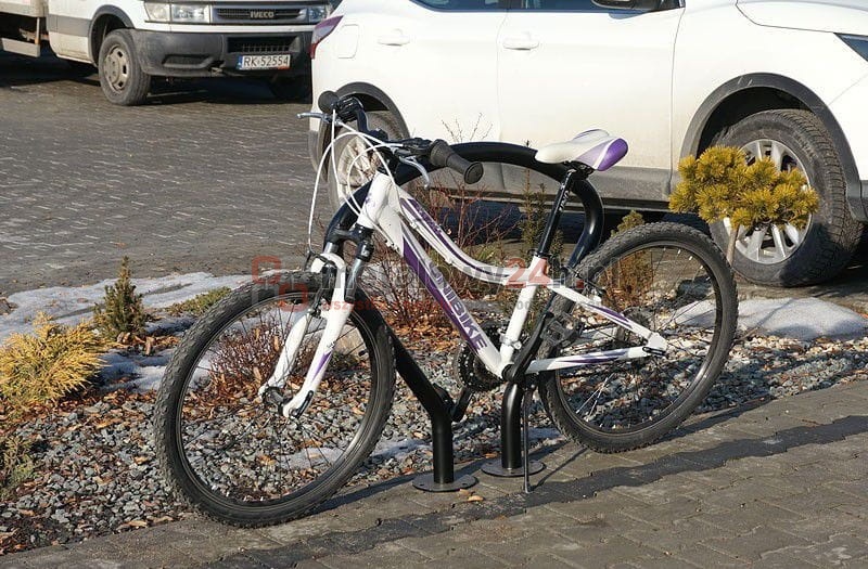 Stojak rowerowy typu U o oryginalnym kształcie. Stojak jest zabezpieczony antykorozyjną - ocynkowaną powłoką i może być pomalowany metodą proszkową. Klient może wybrać kolor z palety RAL. Stojak dostępny jest w dwóch opcjach montażu: do przykręcenia lub do wbetonowania.