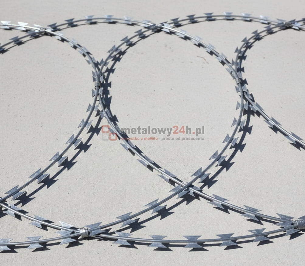 - wysoka skuteczność i efekt odstraszający: mimo płaskiej formy, gęsto rozmieszczone agresywne ostrza działają silnie zniechęcająco na intruzów i są bardzo trudne do sforsowania bez odniesienia obrażeń;