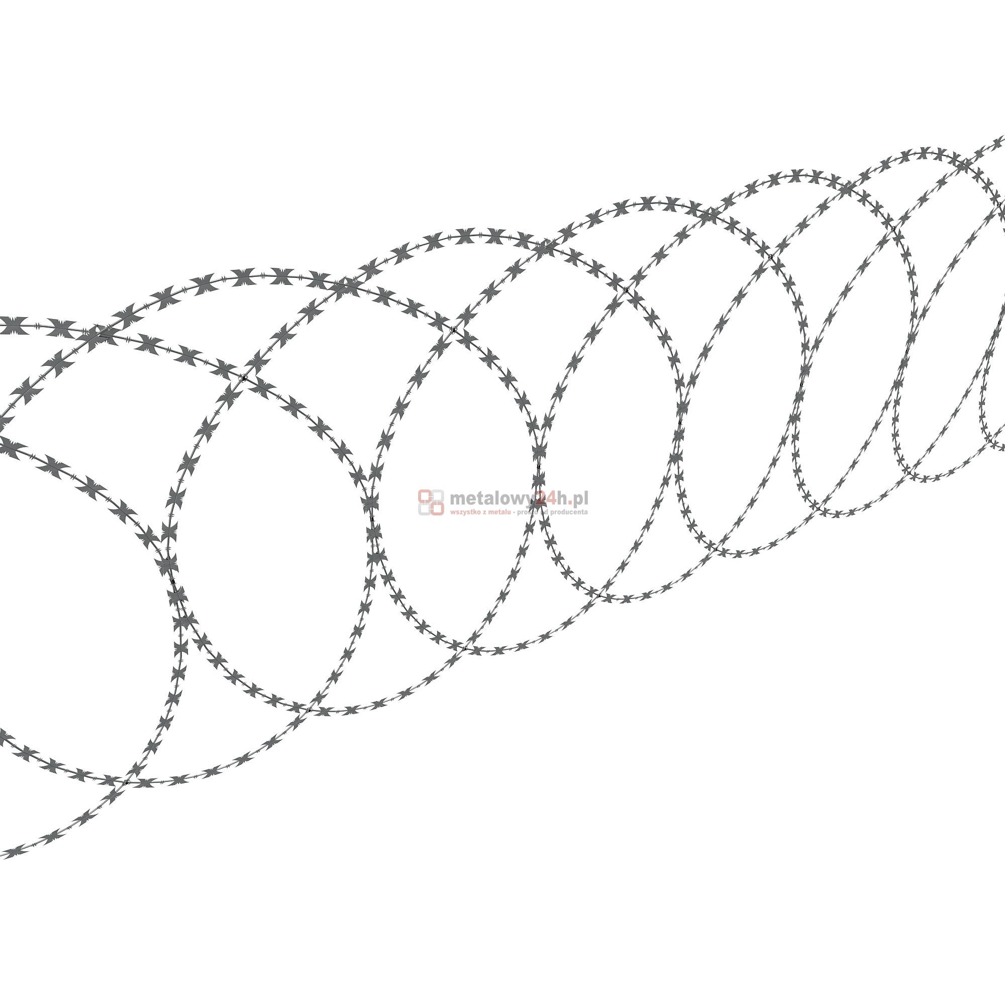 Zasieki płaskie z drutu ostrzowego - Ø 90 cm (900 mm) - to wysokiej jakości produkt do umiarkowanie agresywnego zabezpieczania obszarów wymagających szczególnej ochrony i dozoru lub obszarów o ograniczonej dostępności (np. placówki wojskowe i policyjne, poligony, lotniska, obiekty Służby Więziennej, tereny przemysłowe). Zasieki płaskie funkcjonują jako ogrodzenie uzupełniające tradycyjnych, neutralnych form ogrodzeniowych, które są dużo łatwiejsze do sforsowania (ogrodzenie panelowe, ogrodzenia z siatki ślimakowej, ogrodzenia betonowe).